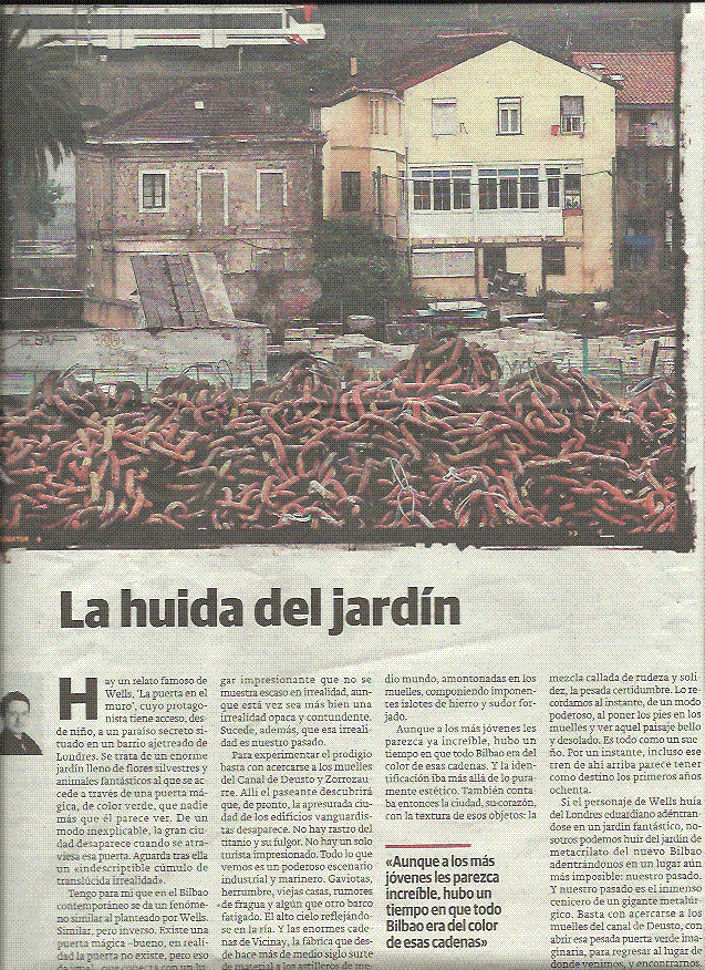 Subimos aquí este artículo de Pablo Martínez Zarracina, El Correo 15/09/2012, porque hemos sentido cierta nostalgia con su lectura. Frente al «nuevo Bilbao» del Museo Guggenheim, las torres de Isozaki, la de Pelli, la AlhóndigaBilbao de Philippe Starck, el Palacio Euskalduna o el paseo de Abandoibarra, nos sigue gustando pasear y descubrir el Bilbao industrial porque sus colores, sus materiales, sus edificios le dotan de una personalidad y carácter que quizás esté perdiendo en detrimento de una nueva ciudad comparable con otras muchas en el mundo construidas en el imaginario de los artistas de renombre internacional. Sentimos que el pasado industrial ha quedado al margen, no está en las rutas turísticas, le damos la espalda. «La mezcla callada de rudeza y solidez, la pesada certidumbre» ha dejado su huella en muchas generaciones y es la esencia del «ser bilbaino». ¡Nos gusta recordarlo!.